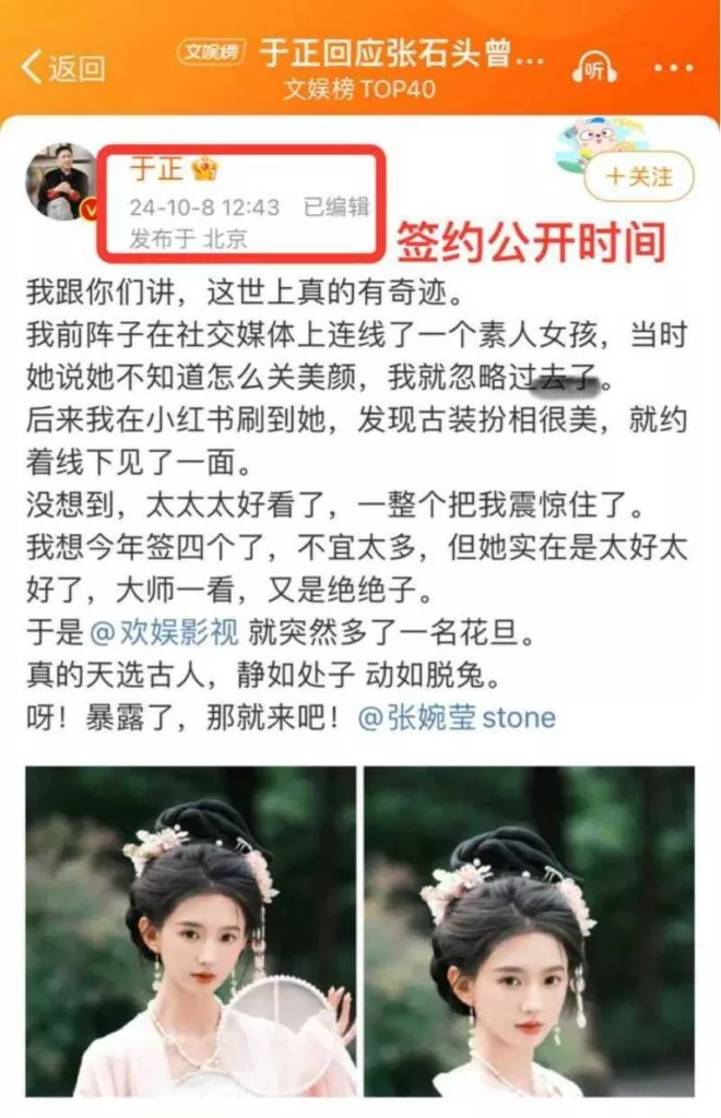抖音上因清纯颜值而走红的高校女教师张石头——张婉莹,凭借自己的不懈努力,最终如愿以偿地被娱乐圈大佬于正签约。然而,她的光辉时刻却迅速被曝光出一段黑历史。知情人士透露,她曾与已婚男性纠葛,令人震惊。在她刚刚签约的同一天,下午便有消息人士对她的过往进行了严厉揭露。