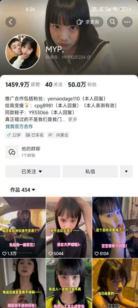 抖音150万粉丝网红张悦,同时与其男友共同创建以情侣日常为主的账号MYP也有50玩多万粉丝,平日的作品虽有剧本,但贴近生活小日常,也因为张悦古灵精怪的性格和甜甜的外表,在平台走红,但近日却突发新闻,张悦本人在内蒙家中跳楼身亡。