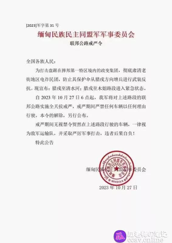 这是来自三支反政府武装力量之一的缅甸民族民主同盟军的“讨贼檄文”,证明突然袭击事件已经有成熟的计划