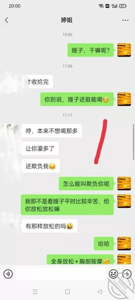 其实我也没喝多,但我就故意醉醺醺地去。酒醉说话方便嘛。虽然她vx上表现的有点抵触我,但我能感觉到她也挺高兴的。你们看她那句,你一个人去喝吗?多少稍微有点想去的意思,但是我觉得还是不能太急迫,也就没继续这个话题!